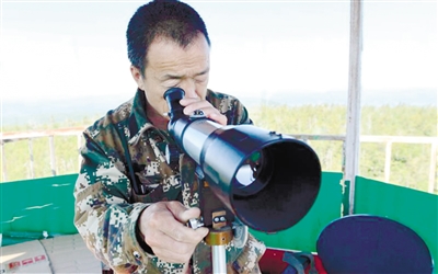 如果說忍受孤獨寂寞是對鄭洪山的考驗,那么工作的難度系數(shù)大則是鄭洪山面臨的更大考驗。大黑山礦石多,受到礦石影響,瞭望塔上的羅盤會產(chǎn)生偏差,無法準(zhǔn)確定位。一旦有了火情,即便是瞭望員第一時間發(fā)現(xiàn)了,也無法精準(zhǔn)地說出具體的位置,給撲救工作帶來很大難度。記得參加工作不久,一次,鄭洪山報了個火點,結(jié)果撲火隊員趕到“火點”后卻沒發(fā)現(xiàn)火情,又翻了一座山才找到準(zhǔn)確起火點,鄭洪山心里真是既著急又難過自責(zé)。那時,鄭洪山就在心里暗暗發(fā)誓,一定要提高自己對起火點定位的準(zhǔn)確性?墒牵敕ㄊ呛玫,他卻一直找不到有效的方法,鄭洪山只能一次次對自己說,一定要想辦法解決這個難題。于是在塔上的日子里,鄭洪山給自己定了一個任務(wù)——找坐標(biāo)點。鄭洪山一遍遍觀察瞭望,望遠鏡、羅盤、地圖被鄭洪山一次次拿起放下,有時一天最多拿起上千次,胳膊酸了,眼睛看花了,可是鄭洪山卻從未想過放棄。功夫不負有心人,在一次次實驗后,鄭洪山終于發(fā)現(xiàn)1035瞭望塔,正好是153度。從此,1035瞭望塔成了定位標(biāo)志物,有了標(biāo)志物,就能準(zhǔn)確報出火點的方位,定位的準(zhǔn)確率大大提高了。30多年來,鄭洪山根據(jù)儀器標(biāo)識、山形地貌辨別方向、位置,有了自己一套獨特的方法。