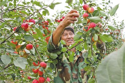 科右前旗俄體鎮白音村果農白振東從1992年開始栽植沙果樹,從庭院栽植到荒山造林,從只有30余棵沙果樹到60多畝沙果園,這期間經歷過自行車推沙果換糧換雞蛋、小驢車提籃叫賣的艱辛,也曾有“盛裝遠嫁”至北京、天津等地的興奮。