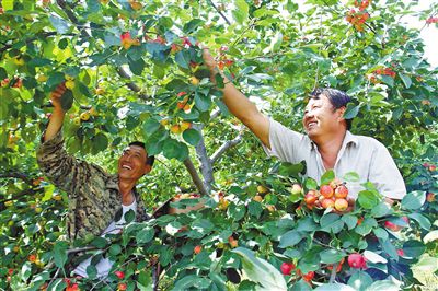 “得把村里的林果優勢利用起來,既要保護好生態,也要讓老百姓富起來。”從1992年開始,白音村“兩委”班子致力于將“綠水青山變成金山銀山”,一棒接著一棒,帶領村民盤活全村的生態資源,把村中4000余畝荒山栽上沙果樹,治理河道、修建公路,村莊變美的同時,小沙果也成了金果子。