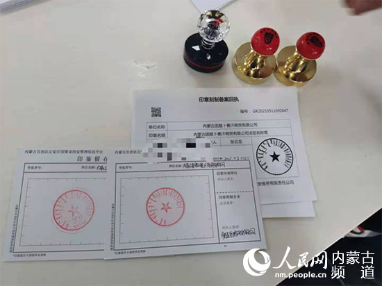 烏拉蓋管理區內新開辦市場主體免費刻制印章,實現企業開辦“零成本”。人民網 富麗娟攝