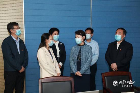 9月8日上午,自治區黨委副書記、自治區代主席王莉霞看望慰問內蒙古大學教授、省部共建草原家畜生殖調控與繁育國家重點實驗室負責人胡薇(左二)及其科研團隊人員。內蒙古日報社融媒體記者 金泉 攝