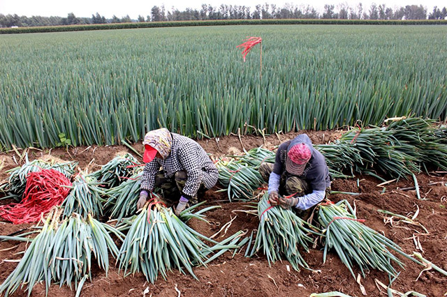“這些收購商,有山東的、河南的、河北的,都是在合作社的統一溝通下集中過來收購的,有幾個打電話來收購的,都沒敢答應他。”東海力斯臺村村民宋文舉一邊忙著起蔥一邊高興地說。