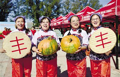 9月10日,村民在展示大南瓜。當(dāng)日,第四屆“南瓜節(jié)暨農(nóng)產(chǎn)品交流會(huì)”在呼和浩特市賽罕區(qū)黃合少鎮(zhèn)格此老村舉行,村民們載歌載舞慶豐收,與游客分享喜悅心情。活動(dòng)現(xiàn)場(chǎng),黃合少鎮(zhèn)各村村民還展示了網(wǎng)紋瓜、小南瓜、葡萄、火龍果等特色農(nóng)產(chǎn)品。記者 孟和朝魯 程英軍 攝