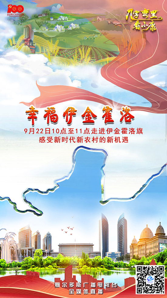 在慶祝中國共產黨成立100周年之際,由鄂爾多斯市委宣傳部主辦、鄂爾多斯廣播電視臺承辦、各旗(區)委宣傳部及融媒體中心協辦的大型全媒體直播活動《幾字彎里看小康》,9月22日10:00—11:00走進伊金霍洛旗,帶領大家到天然氧吧吸氧踏秋,到田園村落靜享時光,到工業礦區看綠色蝶變!