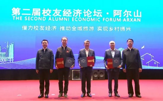 興安盟委書記張曉兵,阿爾山市委書記楊永久分別為校友企業(yè)家代表陳東升、張文中、閻志頒發(fā)了“興安盟生態(tài)文明建設(shè)和旅游產(chǎn)業(yè)發(fā)展代言人”聘書和“阿爾山市榮譽(yù)市民”證書。興安盟委副書記、盟長蘇和,阿爾山市市委副書記、市長王曉歡分別就興安盟總體情況和項(xiàng)目以及阿爾山旅游產(chǎn)業(yè)進(jìn)行了推介。興安盟與有關(guān)校友企業(yè)簽署了高端調(diào)味品生產(chǎn)制造及銷售一體化、保健果茶、中草藥全產(chǎn)業(yè)鏈建設(shè)、酒產(chǎn)品開發(fā)、高端天然礦泉水開發(fā)、景區(qū)開發(fā)索道、論壇經(jīng)濟(jì)等7個(gè)方面的合作項(xiàng)目協(xié)議和1個(gè)捐贈(zèng)協(xié)議。