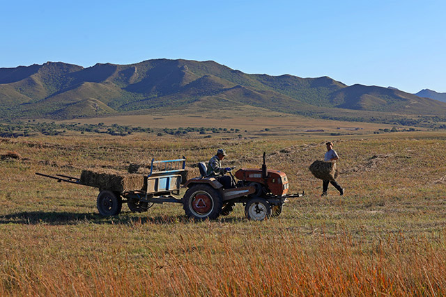 牧民正在打草