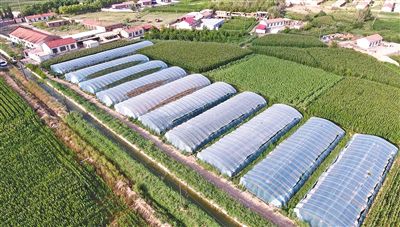 武志強(左一)與鄉(xiāng)親 在華萊士瓜大棚里交流。