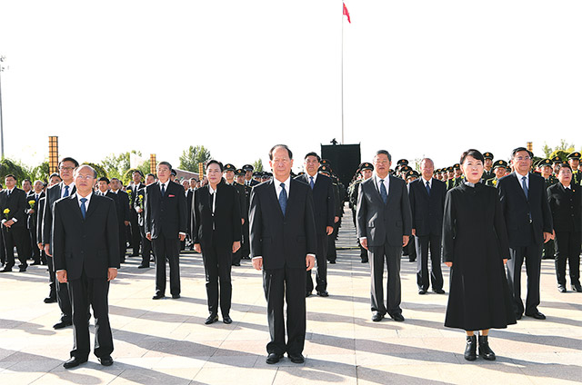 9月30日,烈士紀念日。當天上午,自治區黨委書記、人大常委會主任石泰峰,自治區黨委副書記、自治區主席王莉霞,自治區政協主席李秀領等自治區領導來到大青山紅色文化公園,與首府各族各界代表一起,向烈士紀念碑敬獻花籃,深切緬懷革命先烈,向人民英雄致以最崇高的敬意。