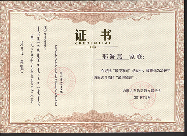 圖為邢海燕一家獲得內蒙古自治區最美家庭。受訪者供圖