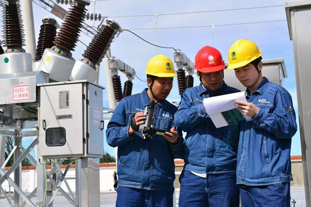 10月1日,國網科右中旗供電公司運維檢修部變電班組工作人員在66千伏百吉納變電站內對變壓器進行紅外測溫。董文龍攝