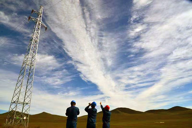 10月1日,國網科右中旗供電公司供電服務中心配電搶修班工作人員,正在對10千伏巴乙線進行線路巡視,為居民國慶期間正常用電保駕護航。董文龍攝
