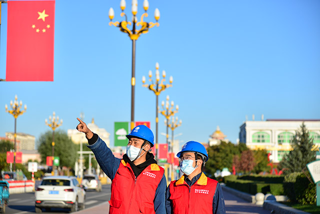 國慶節期間,國網科右中旗供電公司保電搶修的工作人員,駐守在鄉村振興前沿,穿梭在保電工作現場一線,幫助基層解決各類用電相關問題,讓居民們切實得到滿滿的幸福感。(董文龍)