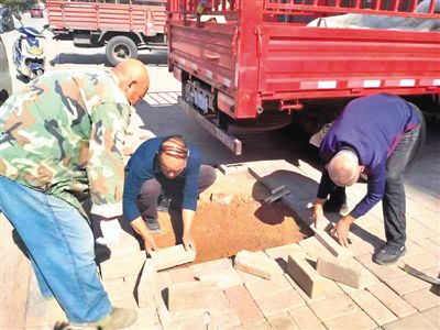 青山社區(qū)“兩委”成員協(xié)調(diào)維修轄區(qū)破損嚴(yán)重路面,受到居民稱贊。