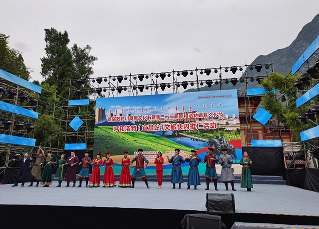 10月19日,“重走昭君和親路,重逢美麗敕勒川”來到了美麗的宜昌市興山縣,呼和浩特市委宣傳部副部長、呼和浩特市文化旅游廣電局黨組書記、局長蘭毅在致辭中表示,這次“重走昭君和親路 重逢美麗敕勒川”呼和浩特文旅快閃推廣活動,是貫徹落實習近平總書記對內蒙古重要講話重要指示批示精神的一項具體舉措,是呼和浩特與宜昌、西安、榆林等城市文旅交流、共謀發展、共話未來的一場合作盛宴,必將對各地文旅融合發展產生深遠影響,為文化旅游高質量發展注入新的生機和活力。活動以呼和浩特市文旅資源專項推介會為契機,推出呼和浩特市各季文旅產品,用文藝表演展示呼和浩特市獨特的文化魅力,通過各景區推介人的詳細介紹,配合圖片、視頻等內容展示了呼和浩特市的亮麗風景和宜居人文環境。