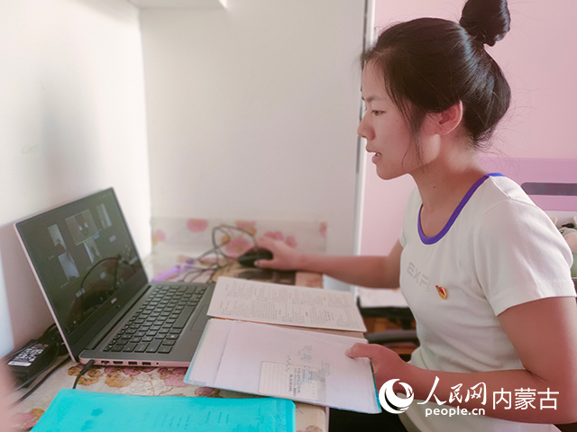 當(dāng)?shù)刂袑W(xué)老師正在給學(xué)生上網(wǎng)課。額濟納旗委宣傳部供圖