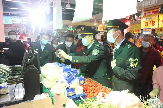 呼和浩特市市場監管局黨組書記、局長蘇云喜表示,自10月23日,呼和浩特市出現確診病例后,呼和浩特市市場蔬菜及部分生活用品的價格略有一點波動,但總體市場平穩、貨源充足,全市各級市場監管部門繼續全面組織開展市場價格監管和疫情防控工作,嚴肅查處借疫情防控囤積居奇、捏造散布漲價信息、哄抬價格等擾亂市場價格秩序的違法行為。