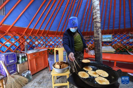 10月24日,巴彥陶來蘇木牧民在制作油餅。