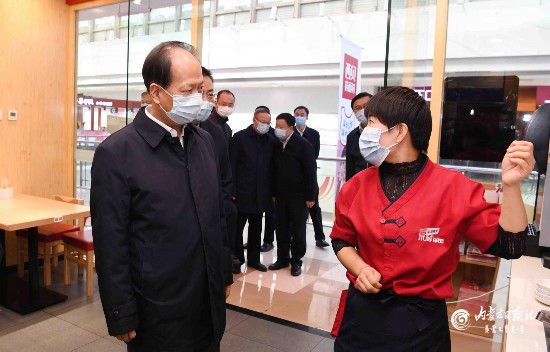 10月26日,自治區黨委書記、人大常委會主任石泰峰在呼和浩特萬達廣場,查看店鋪、餐飲經營者新冠肺炎疫情防控落實情況。內蒙古日報社融媒體記者 袁永紅 攝