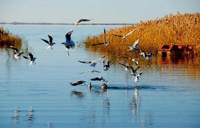 鷗翔居延海 。(攝影:劉麗華)