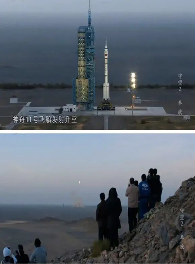 搬遷牧民觀看神州11號飛船發射升空。(來源:央視網)
