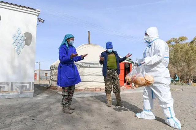 此次新冠肺炎疫情在金秋旅游旺季突然來襲,近萬名游客滯留額濟納,醫護人員、干警、蘇木嘎查工作人員、志愿者等不分晝夜,堅守一線。淳樸善良的額濟納人民看在眼里,急在心里。他們有的捐出了自家“家當”——駱駝、牛、羊,有的拿出家中的米面,為滯留游客制作油餅、饅頭等食物,竭盡所能為抗疫前線的工作人員和滯留游客送去溫暖。