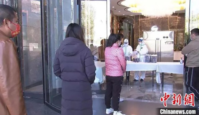 旅行團負責人排隊為游客領餐。(來源:額濟納旗融媒體中心)