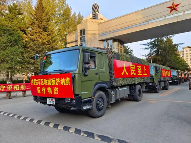 內蒙古軍區馳援額濟納旗醫療物資。(來源:“內蒙古新聞廣播”微信公眾號)