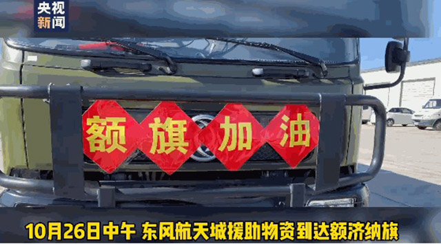 東風航天城向額濟納援助棉大衣等應急物資。(來源:央視新聞客戶端)
