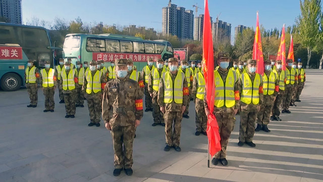 面對額濟納旗疫情防控形勢,巴彥淖爾軍分區迅速吹響集結號,第一時間抽調74名官兵和各旗縣區民兵,攜帶物資,在做好自身防護的前提下,逆行出征奔赴阿拉善盟,馳援額濟納旗抗擊新冠肺炎疫情,協助當地開展社區居民核酸檢測、維護現場秩序、消殺公共場所、道路封控保障等工作。(陳煥坤、孫超)