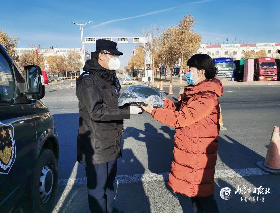 11月1日上午,自治區(qū)黨委副書(shū)記、自治區(qū)主席王莉霞看望慰問(wèn)在額濟(jì)納旗疫情防控一線(xiàn)的工作人員,向水泥廠(chǎng)十字路口卡點(diǎn)干警贈(zèng)送御寒大衣。