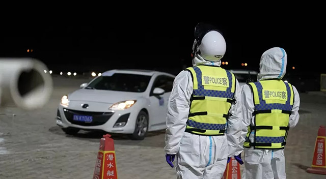 在公安民警的統一指揮下,自駕游旅客有序進入健康檢測地點