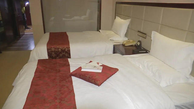 游客們將一人一個房間進行健康監測,每個房間都配有獨立衛生間,24小時熱水,有線電視、WiFi等設施一應俱全,所有工作人員將以真心、細心,全力為滯留游客提供暖心、舒心、放心的服務。