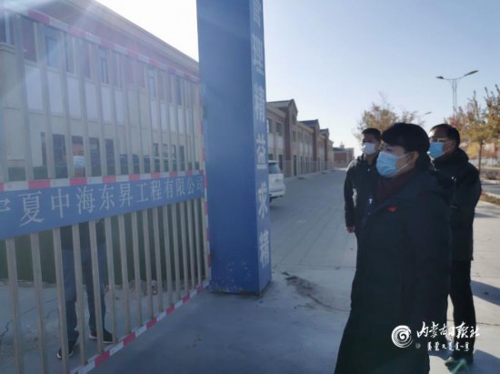 11月3日,自治區黨委副書記、自治區主席王莉霞在阿拉善盟額濟納旗天賦玫瑰園住宅小區建筑工地督導檢查疫情防控工作。