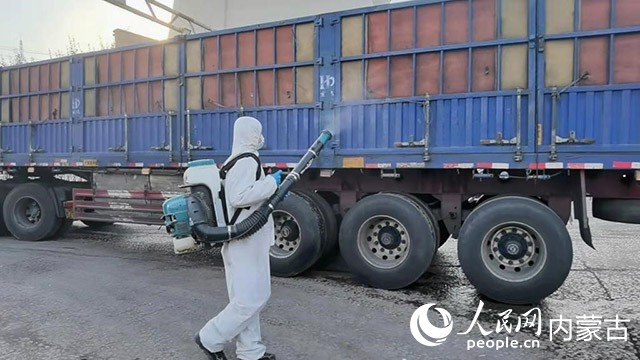 進入魏家峁煤礦的大車都要進行車輛消殺工作。人民網記者 白建平攝