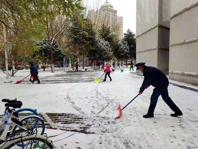 在市城管綜合執(zhí)法局安排部署下,市區(qū)兩級城管部門迅速行動,執(zhí)法隊員通過徒步方式,逐街逐戶動員機關、團體、學校、企事業(yè)單位及個體商戶,主動承擔“門前三包”責任,并按照“門前三包”要求,在降雪的第一時間清掃責任區(qū)內積雪。市綜合行政執(zhí)法支隊在參與綠色清雪除冰工作的同時走進商戶,發(fā)放《清雪除冰告知書》,發(fā)動沿街商戶參加到綠色清雪除冰工作中,自覺履行“門前三包”責任。全面做好交通樞紐、場站等人流集中區(qū)域以及背街小巷等地的掃雪鏟冰工作。同時積極動員社會力量,號召廣大市民和志愿者,積極參與到掃雪工作中,確保雪后道路暢通和環(huán)境衛(wèi)生的安全、整潔。