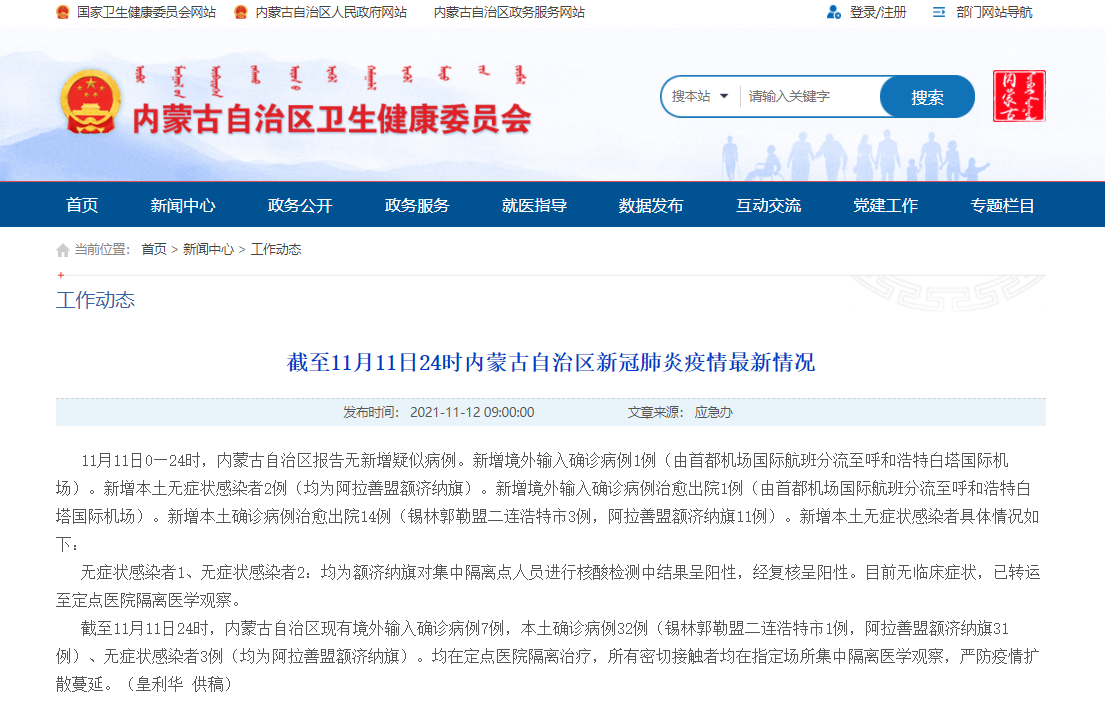 內(nèi)蒙古自治區(qū)衛(wèi)生健康委員會網(wǎng)站截圖
