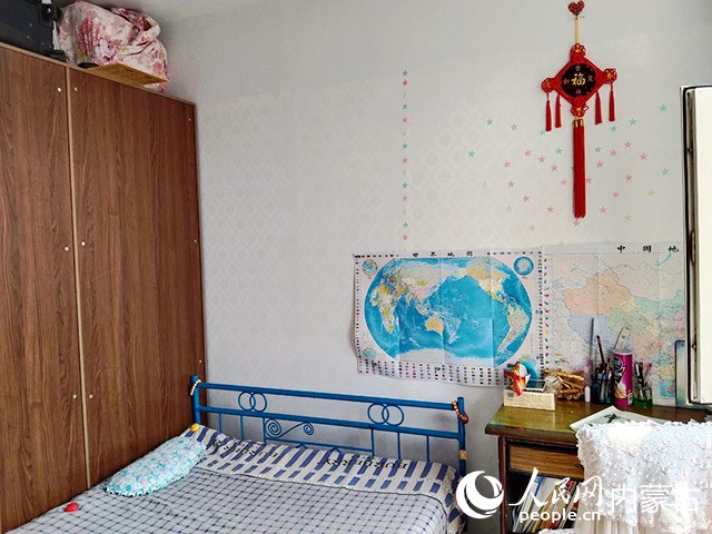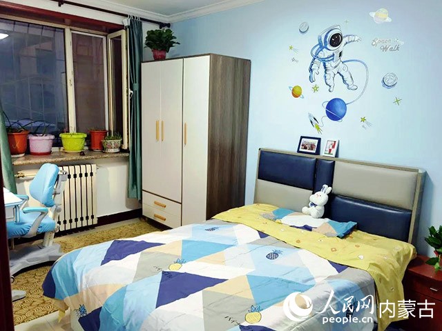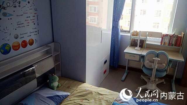 在對原有住房進行規(guī)劃、設(shè)計后,施工隊開始裝修,并配備必要的家具、臥具和學(xué)習(xí)生活用品。歷時半個多月,一間以藍色為主色調(diào)的小屋建成了,F(xiàn)在,屬于浩博的那一半臥室,泛黃的臥室墻壁被粉刷成淡藍色,換了新的小床和衣柜,新添置的書桌上擺滿了課外書,看起來整潔又溫馨。