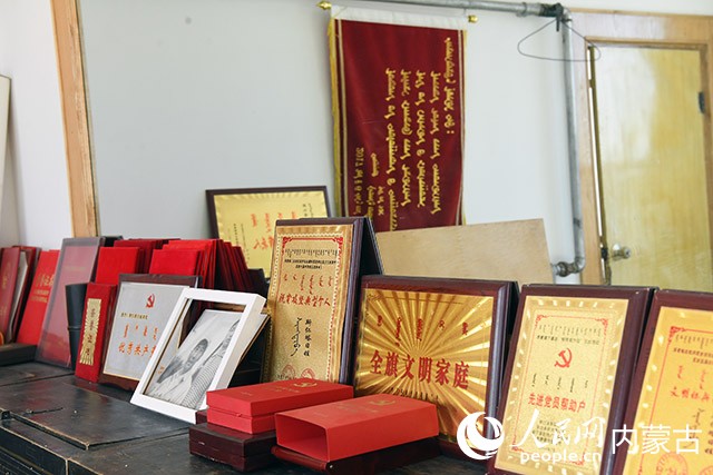 “先進(jìn)黨員幫助戶”、“全旗文明家庭”、“內(nèi)蒙古好人榜”誠實(shí)守信好人、“脫貧攻堅(jiān)典型個(gè)人”......滿滿一屋子的榮譽(yù)證書、獎(jiǎng)牌、獎(jiǎng)?wù)拢o靜講述鄂托克前旗牧民斯仁塔日娃“脫貧”與“扶貧”的故事。