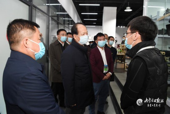 12月3日下午,自治區(qū)黨委書記、人大常委會(huì)主任石泰峰來(lái)到內(nèi)蒙古中航民富科技有限公司調(diào)研。內(nèi)蒙古日?qǐng)?bào)社融媒體記者 袁永紅 攝