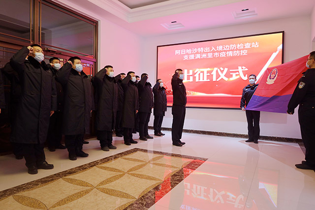 阿日哈沙特出入境邊防檢查站支援滿洲里市疫情防控突擊隊集結出征