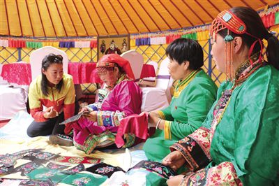 外地游客對(duì)扎魯特旗的刺繡一見(jiàn)鐘情。康桂君 攝
