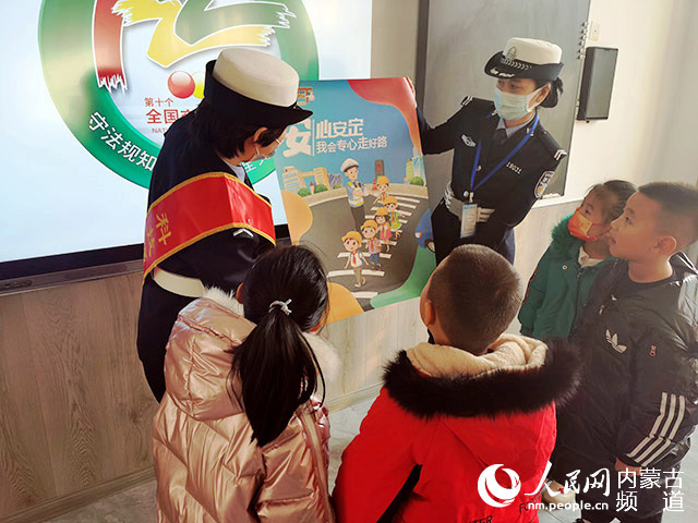 人民網呼和浩特12月15日電 (王慧)為切實做好中小學生交通安全教育工作,提升學生交通安全意識,使學生掌握基本的交通安全知識,提高自我保護和自救能力。近日,內蒙古警察職業學院老師、呼和浩特交通管理支隊特勤大隊民警聯合公交公司工作人員一同來到成吉思汗街小學,開展“守法規知禮讓,安全文明出行”為主題的交通安全知識宣傳活動。活動中,講解員通過道路指引圖片講解,安全知識的問答以及現場體驗的形式,生動的交流體驗讓孩子們認識到交通安全的重要性。