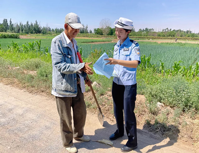 她積極參與“美麗鄉村行”“122全國交通安全日”等主題宣傳活動。在活動中不斷創新宣傳方式,美麗鄉村行送溫暖活動中,她認真對雞蛋做了改造,寫上了宣傳文字,并畫上了可愛的表情,將雞蛋送到村民手里,讓村民感受到溫暖的同時又添加了一些俏皮,每一次的進鄉村,都是一次愉快的外勤,在為村民普及交通安全知識的同時,也會像朋友一樣溝通交流,嘮一嘮家常,會在農忙時搭把手。在教師節來臨之際,走進校園,與孩子們溝通交流,俯下身子細聲講解“一盔一帶”宣傳折頁上的內容,提高其交通安全意識 ,在孩子們的眼中她就是一個溫柔大姐姐。同時每月定期都會走進社區,駕校,企業,服務區等場所,面對不同的社會人群開展不同的交通安全普法宣傳,貼心解答群眾的一些問題,并且發放宣傳資料,張貼主題海報。實現了宣傳全覆蓋,交通安全知識深入人心。