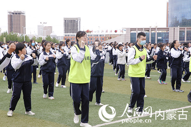 錫林浩特市第六中學學生一起做動感課間操。人民網 富麗娟攝