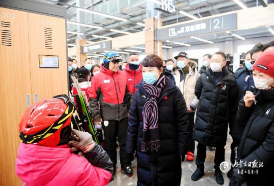 12月26日,自治區黨委副書記、自治區主席王莉霞在馬鬃山滑雪場調研。內蒙古日報社融媒體記者 韓卿立 攝