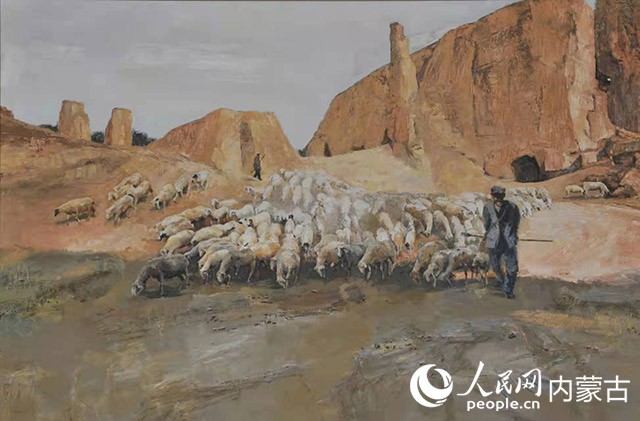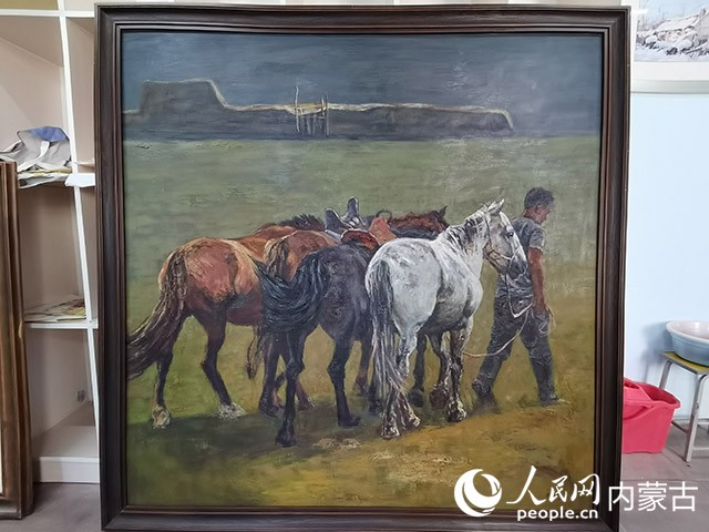 巨幅油畫作品《草原110》。人民網(wǎng) 王慧攝