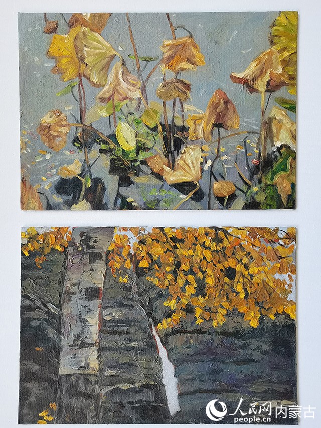 楊伶武的小幅油畫作品。人民網(wǎng) 王慧攝
