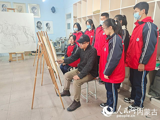 “繪畫要畫自己熟悉的地方,有感情的地方。內(nèi)蒙古的蒼茫與廣闊是其他地域的風(fēng)景不可比擬的,在內(nèi)蒙古大地上的創(chuàng)作也是別有一番情趣的。”走進呼和浩特市鐵二中的畫室,美術(shù)老師楊伶武如是說。當他的巨幅油畫作品映入眼簾時,畫面上草原的風(fēng)景淋漓盡致地展現(xiàn)出來,白雪皚皚、枯草連天,讓人產(chǎn)生無限遐想。此時的楊伶武老師正在用干花和干蓮蓬擺弄靜物準備著上課的內(nèi)容……
