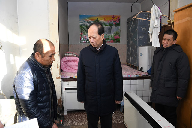 石泰峰十分牽掛群眾的冬季取暖。上午9時許,他首先驅(qū)車來到新城區(qū)三卜樹村,隨機入戶走訪村民李廣平和王軍軍,深入了解“煤改電”取暖情況。“新年快樂!”一進家門,石泰峰就向他們送上新年的祝福。家里熱不熱,電暖器多大功率,電費按什么標準收取,石泰峰一邊察看電暖氣一邊關切地詢問相關情況,并打開電暖器感受取暖效果。了解到“煤改電”后群眾取暖成本明顯增加,現(xiàn)在還有居民一邊使用電暖器一邊靠撿木材生爐取暖,石泰峰指出,“煤改電”目的是解決燃煤散燒問題,但不論怎么改都必須保證老百姓家里暖和,確保群眾能夠溫暖過冬。各級黨委和政府要切實悟透以人民為中心的發(fā)展思想,做群眾工作一定要充分考慮群眾的現(xiàn)實利益,把工作做實、做細、做到群眾心坎上,真正讓老百姓安心、放心、暖心,而不是鬧心、煩心、寒心。