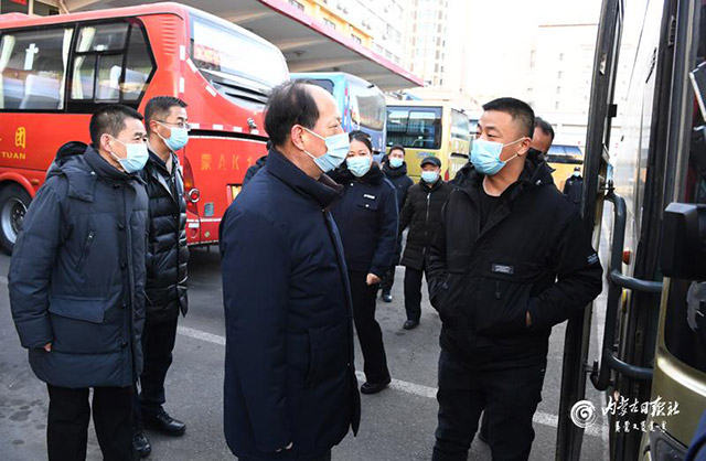 1月1日,自治區(qū)黨委書記、人大常委會主任石泰峰來到呼和浩特長途汽車站,了解新冠肺炎疫情防控和旅客出行情況。內(nèi)蒙古日報社融媒體記者 袁永紅 攝